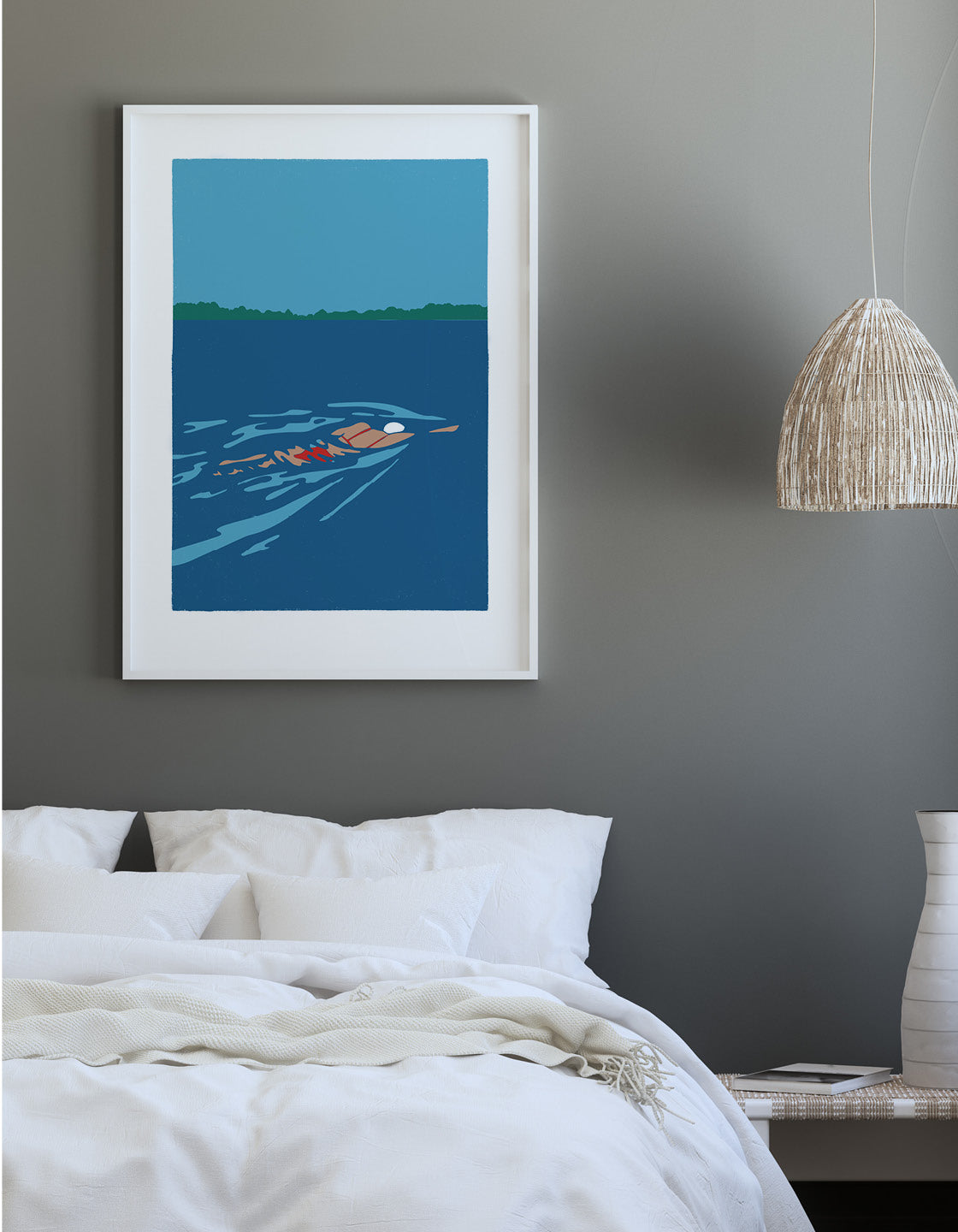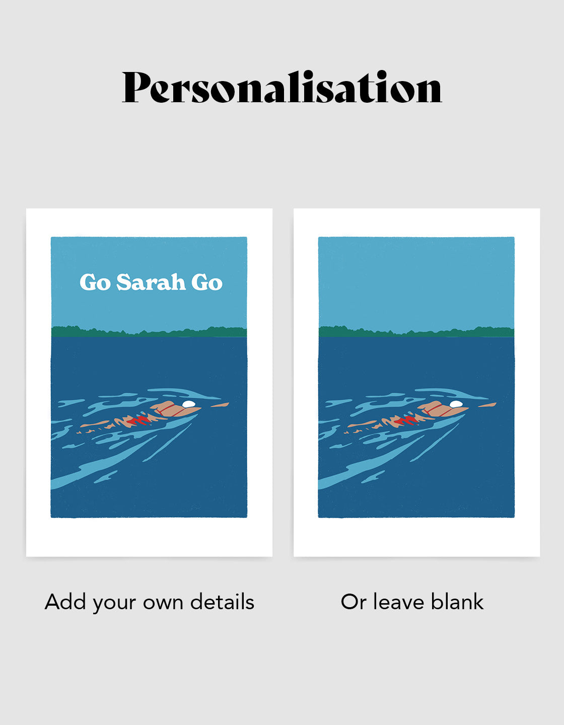 Take a dive into bold style with this sea swimming print. Original and minimal in design combined with striking colours, perfect for adding a splash of personality to your kitchen or bathroom decor. Personalise it and create the perfect gift for a wild swimmer!